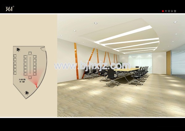 5、考慮了合理的行動路線,以便于人員的走動,辦公家具的選擇充分考慮了辦公及會議的活動性。采用旋轉辦公椅,兩面設計,方便夏冬季節的舒適。辦公桌采用木制材料,呈L形狀。