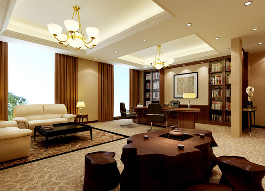 從圖上可以看出,它的裝修色彩非常濃重而成熟。擁有含蓄秀美的特點(diǎn),追求高雅格調(diào)的辦公環(huán)境,是它讓傳統(tǒng)的辦公室裝修藝術(shù)展示于當(dāng)下,新中式風(fēng)格的辦公室裝修更能體現(xiàn)公司高層領(lǐng)導(dǎo)的大氣的風(fēng)范和領(lǐng)導(dǎo)的魅力。
