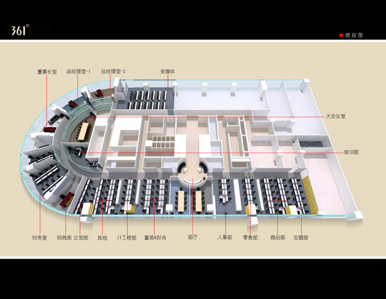 三六一度國際有限公司是一家集品牌、研發(fā)、設(shè)計(jì)、生產(chǎn)、經(jīng)銷為一體的綜合性體育用品公司。作為中國領(lǐng)先的專業(yè)運(yùn)動品牌,因此對辦公室空間裝修設(shè)計(jì)的要求也相對較高。
